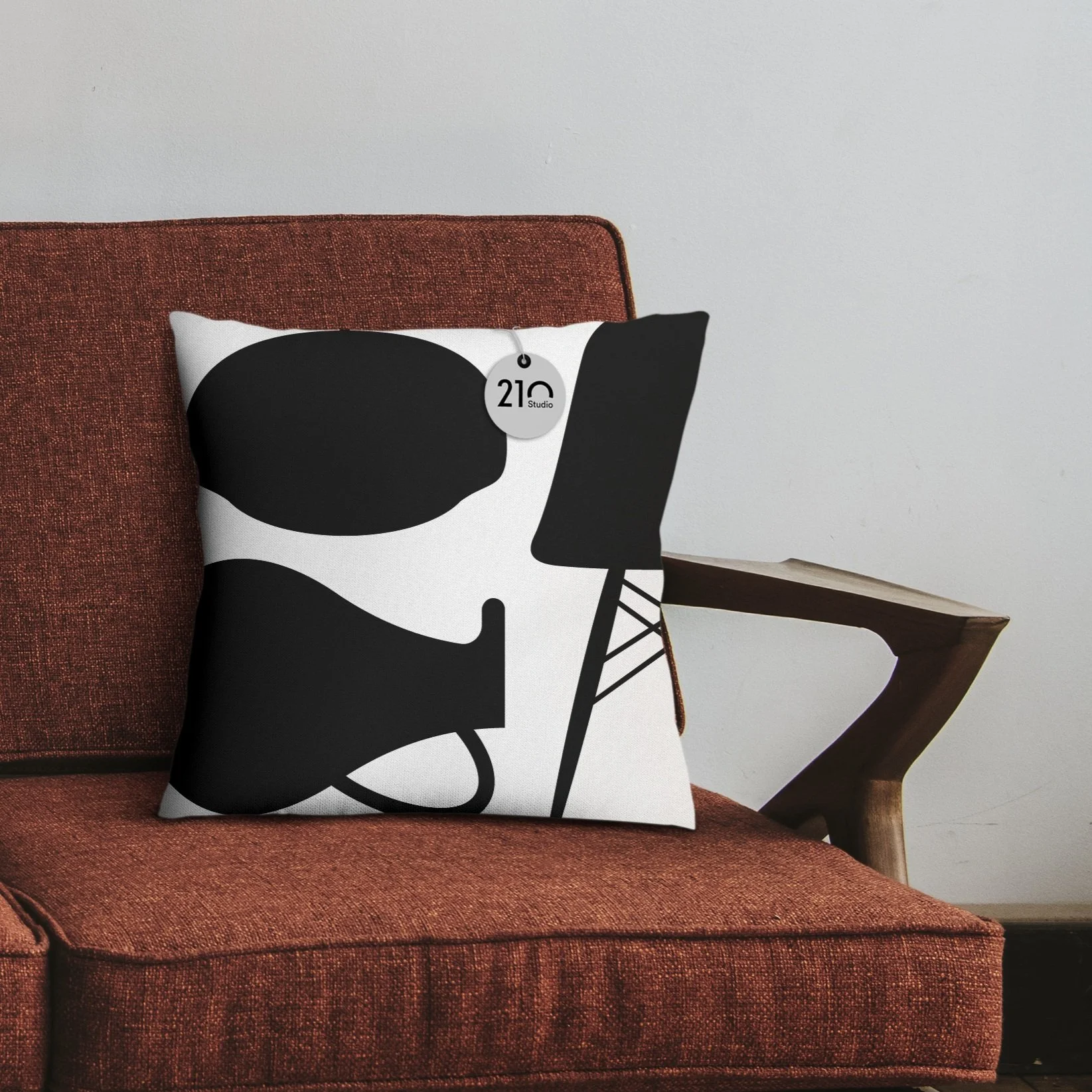 The overall visual language follows that same simplicity and playfulness: a family of stylised monochrome furniture shapes and design objects forming endless patterns that spread across business stationery and other communication formats.